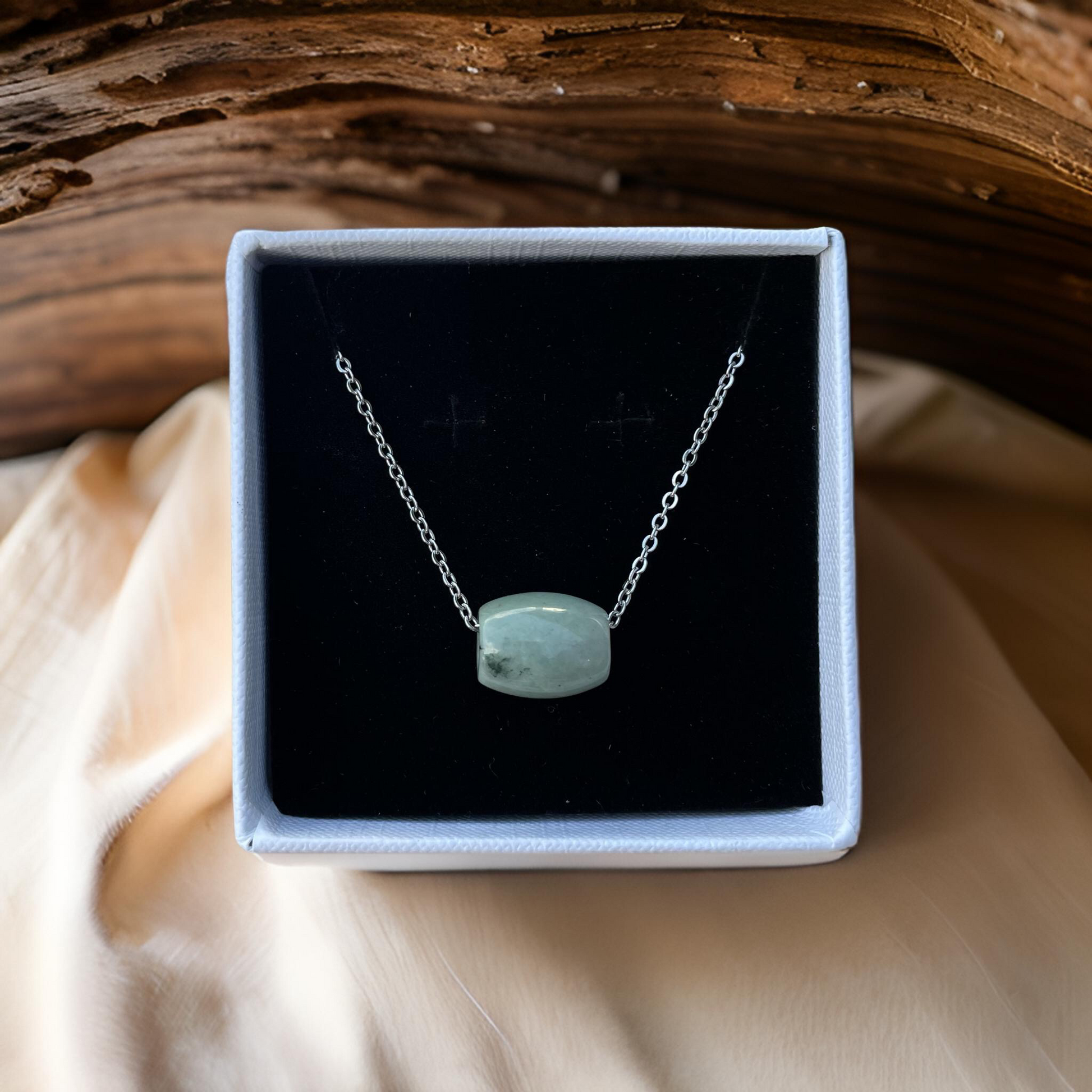 Jade Minimalist Barrel Pendant Necklace – Serenity Meets Style