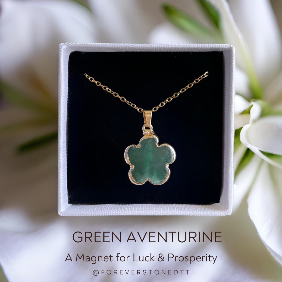Embrace prosperity and good fortune with the Green Aventurine Five-Leaf Clover Pendant.