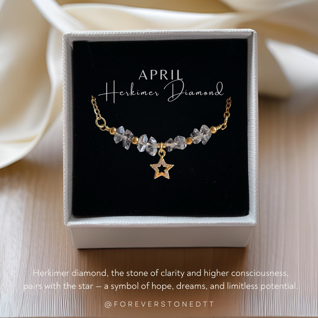 Brilliant and bright, this bracelet radiates pure potential. Herkimer Diamond, the dazzling gem for April, is known for amplifying energy, clarity, and vision. It’s a stone of alignment — perfect for manifesting dreams.