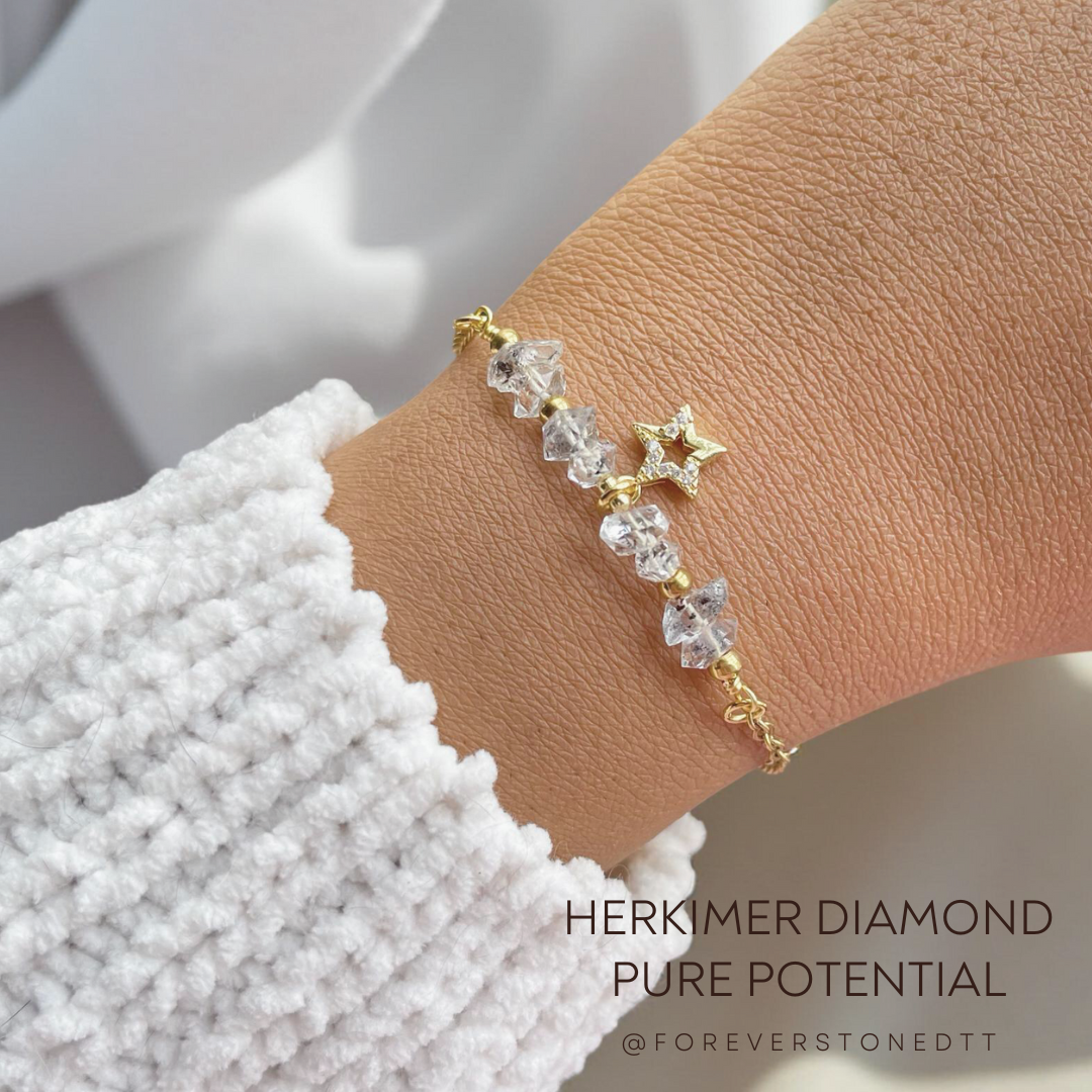 - Gemstones: Genuine Herkimer Diamond (4mm chip beads)