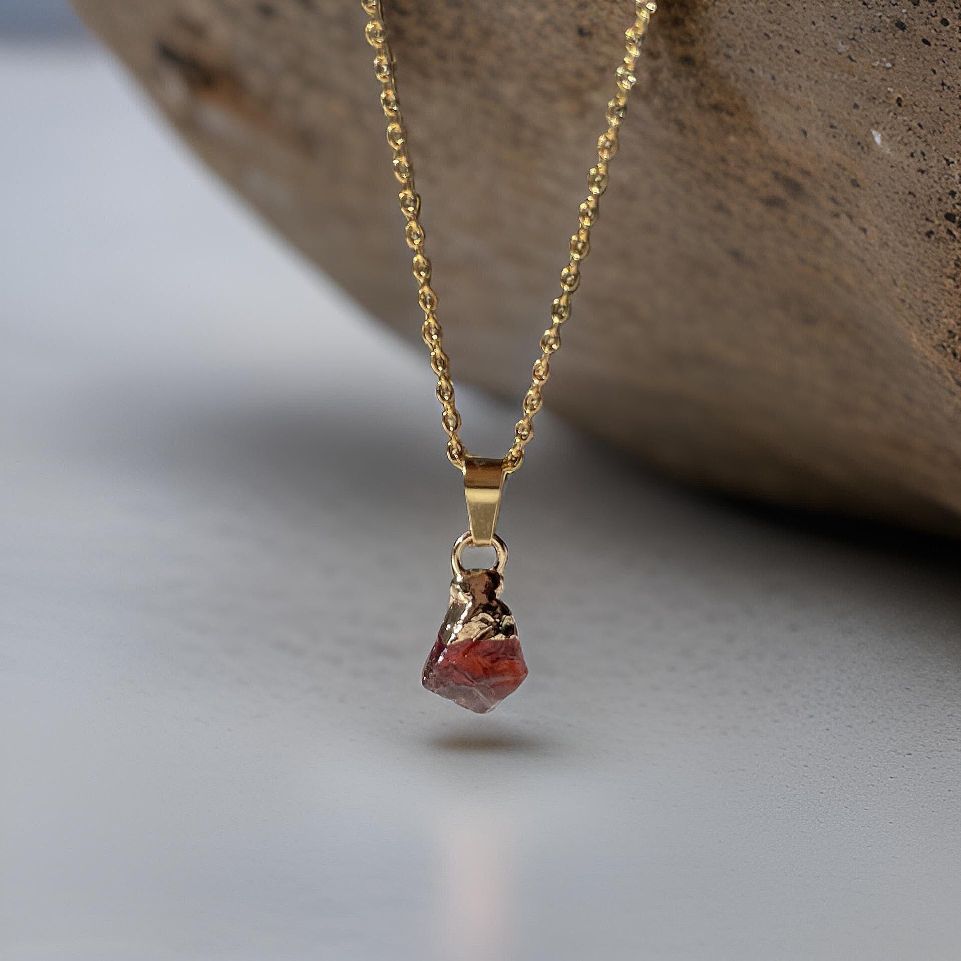 January's Birthstone - Garnet Raw Mini Pendant Necklace