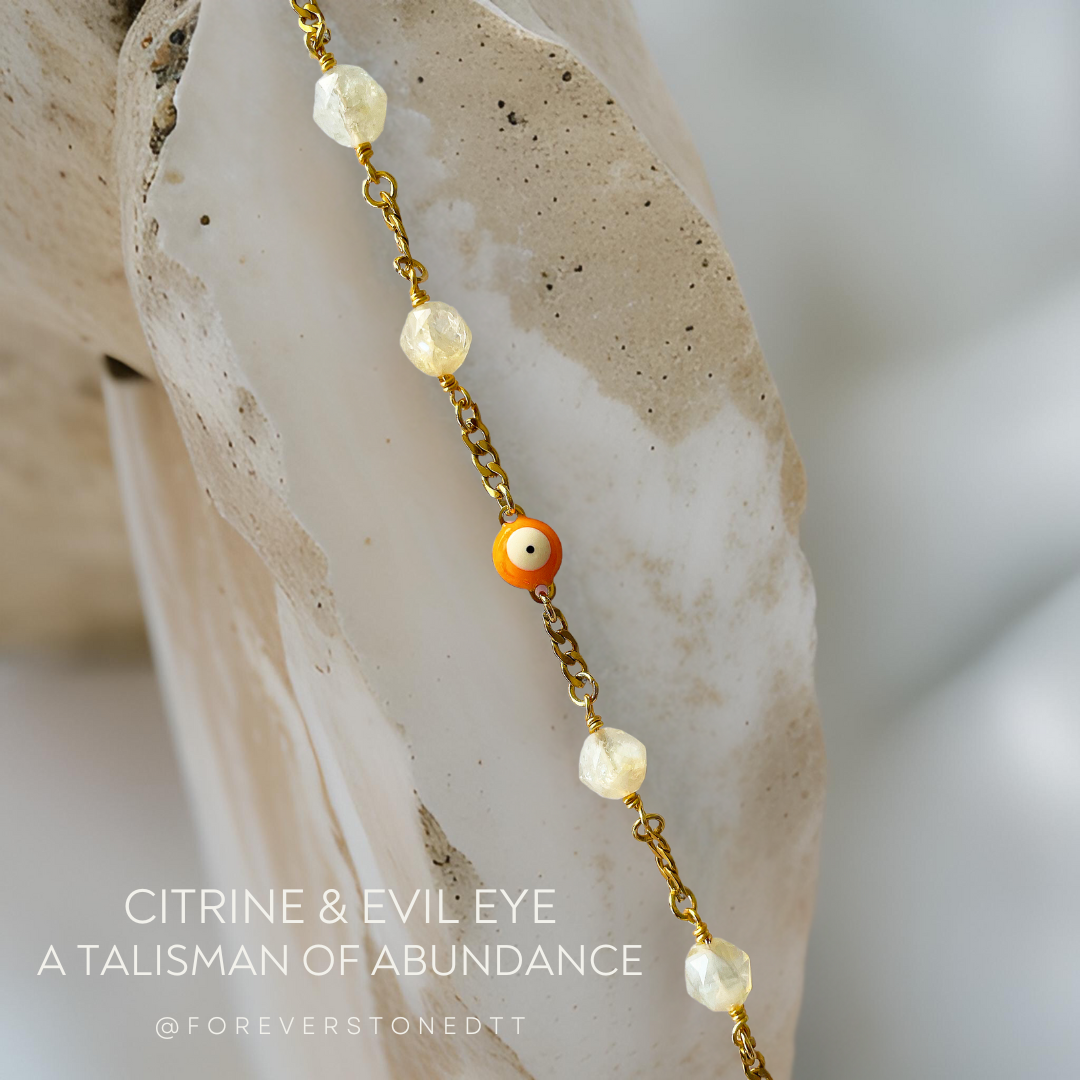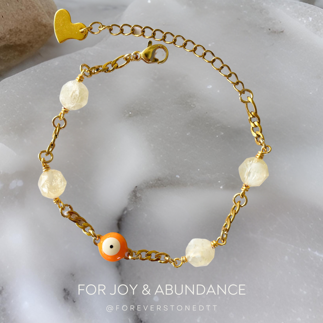 Together, the orange evil eye and Citrine create a bracelet that energizes the spirit and strengthens your sense of self. Wear it as a symbol of joy, drive, and forward movement — a daily reminder that your light is powerful and your path is yours to create.