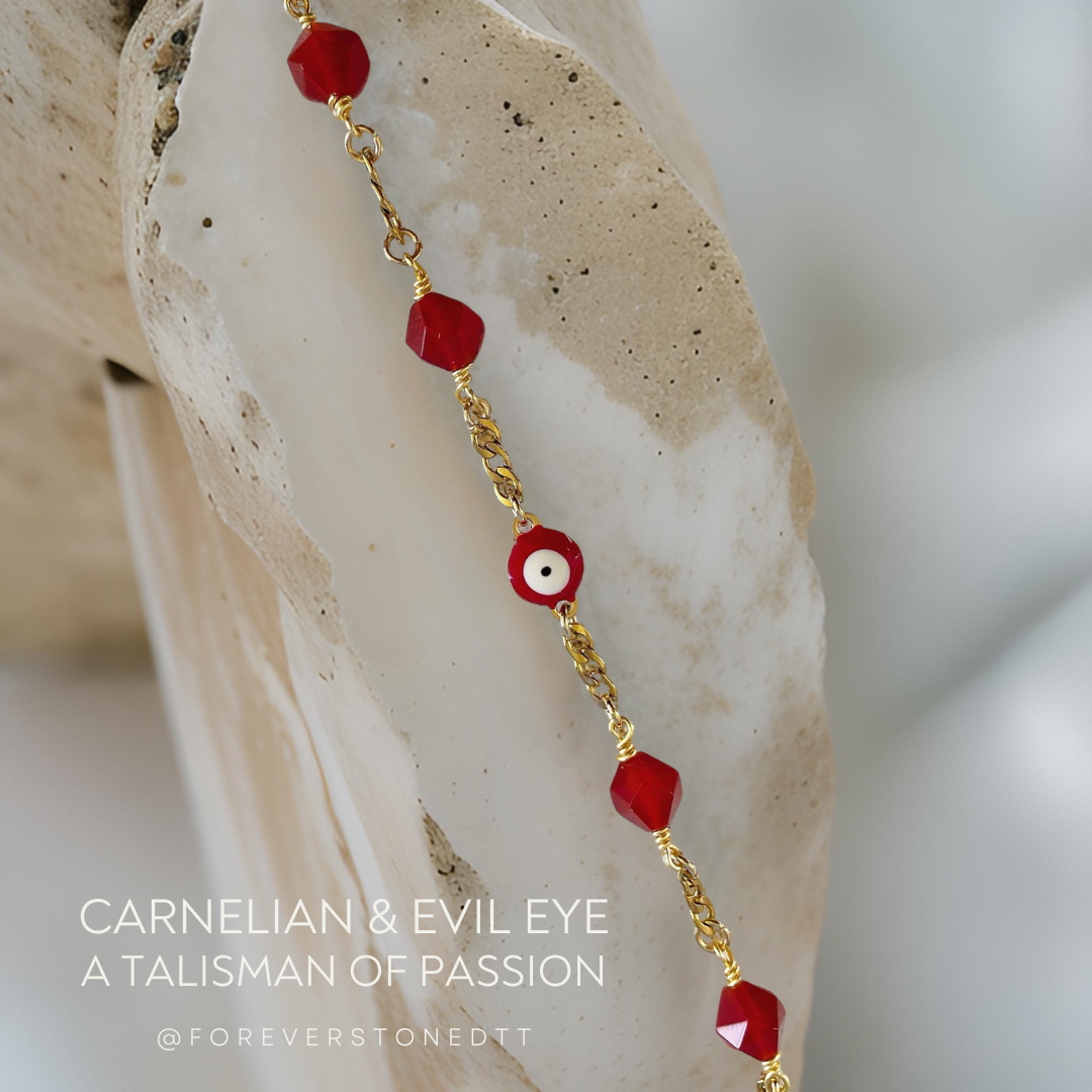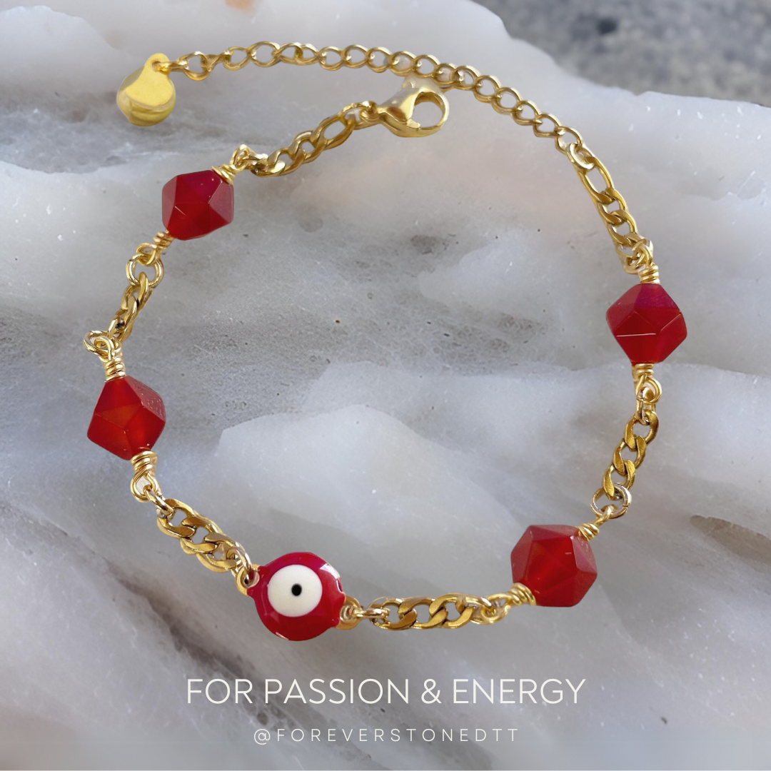 Ignite your ambition and confidence with the Red Evil Eye & Carnelian Bracelet. A bold fusion of passion, strength, and energetic protection, this handcrafted piece is designed for those who move fearlessly through life, embracing their power and unstoppable energy.