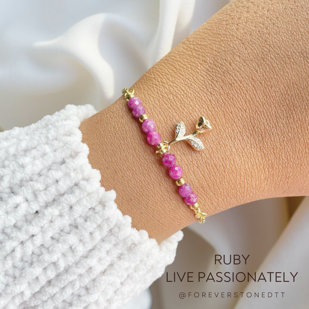 - Gemstones: Genuine Ruby (4mm faceted beads)